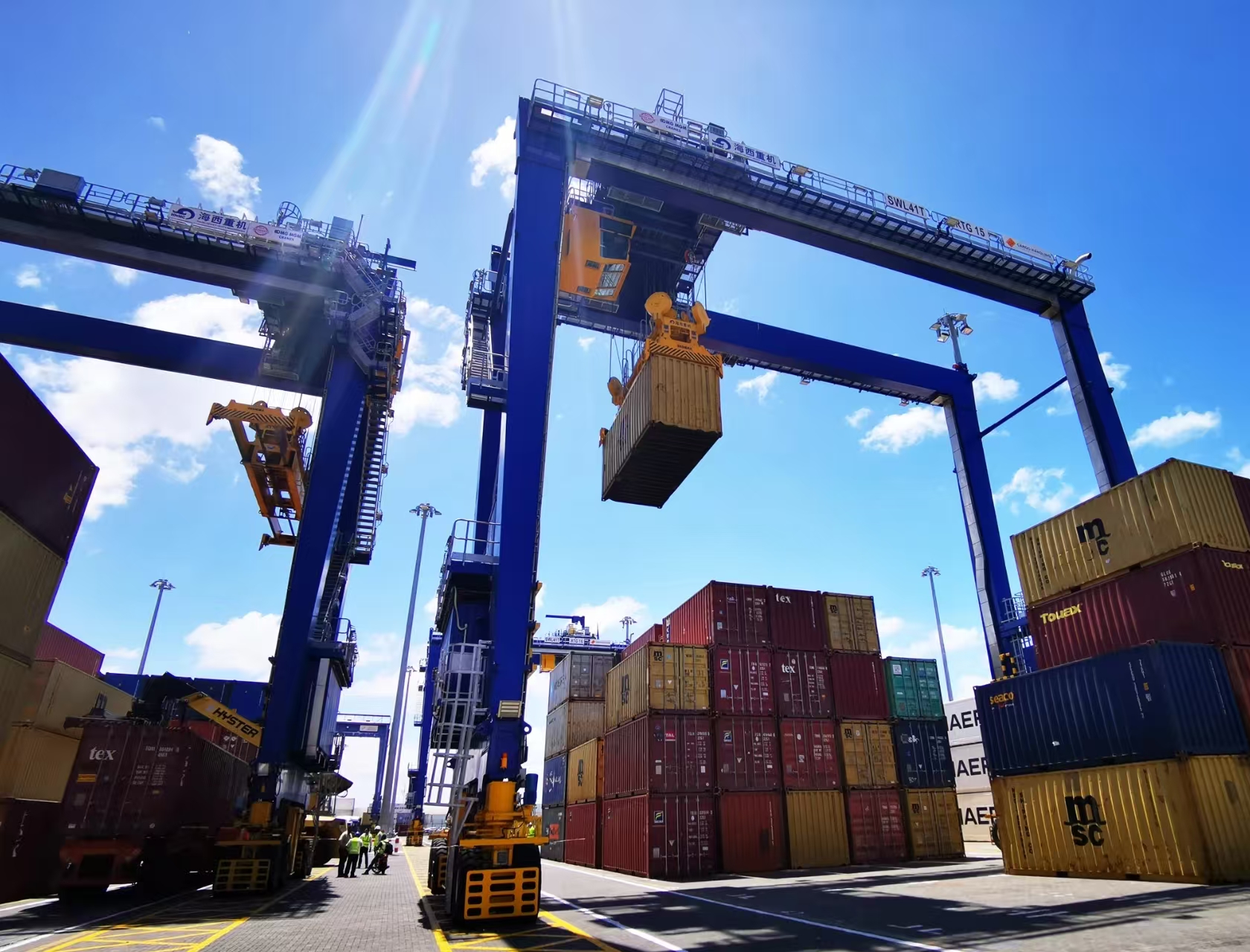 近日中船集團(tuán)旗下武漢船機(jī)海西重機(jī)續(xù)簽連云港港批量全自動(dòng)輪胎吊項(xiàng)目,這是雙方繼連云港港自動(dòng)化軌道吊項(xiàng)目的又一強(qiáng)力合作,標(biāo)志著雙方邁入了全新合作交流階段。